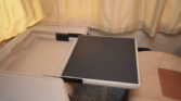 • Electric front drop-down full-size bed