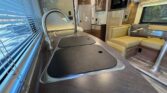 Driver and passenger seats swivel to face the living area
